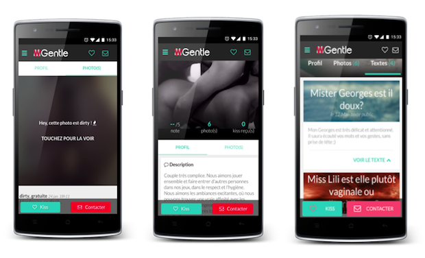Gentle est une application pour couple en recherche de nouveaux frissons à deux ou à plusieurs. L'application, interdite de présence sur les stores, est néanmoins disponible sur le web. La volonté de l'équipe de cette jeune pousse est de poursuivre l'exploration sexuelle d'un couple avec de nombreux jeux et joueurs.