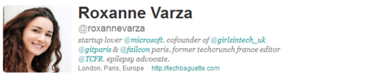 Véritable figure de l'entrepreneuriat féminin, on retrouve Roxanne dans beaucoup d'évènements, comme GirlsInTech ou l'édition de Failcon à Paris. Son blog, Techbaguette, est rédigée en anglais.