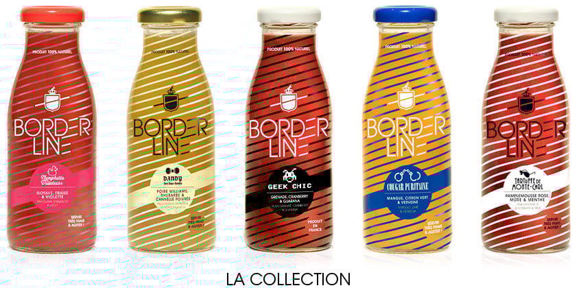Border Line, c'est avant tout un univers de 5 jus aux noms décalés (Nymphette Délicieuse, Dandy des bas fonds, Geek Chic, Cougar Puritaine, Tartuffe de Monte-Carlo), lancé par "4 colocs voulant élaborer une boisson qui rend beau, fort, inteligent et limite la chute des cheveux. Fini les faux fruits sur les bouteilles, les parfums barbants et le politiquement correct". La promesse est-elle tenue?