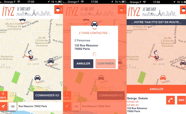 ITYZ est une application mobile gratuite (disponible sur iOS, bientôt sur Android) permettant la commande de taxi par géolocalisation, avec possibilité de suivre le déplacement du taxi commandé en temps réel. Actuellement, 2500 taxis parisiens sont membres du réseau ITYZ, sans obligation de performance, en étant libre de leur utilisation. ITYZ indique que son service leur rapporte en moyenne 3 courses supplémentaires par jour, de quoi générer un revenu additionnel.