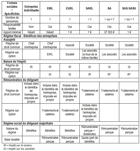 - des critères objectifs : montant minimal du capital social, responsabilité des associés, statut social et fiscal du dirigeant, etc. ;