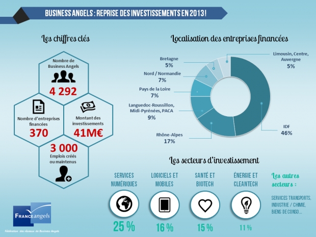 L'association nationale qui veut fédérer et représenter les business angels de France, France Angels, vient de dévoiler le bilan des investissements de ses membres sur l'année 2013. Résultat? Une légère hausse du nombre de business angels, une reprise des investissements et un accompagnement dispensée à toujours plus d'entreprises.[hr]