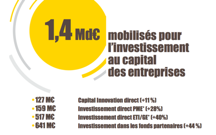 Ce type de placement dans des fonds partenaires a été l’activité la plus dynamique dans les investissements au capital des entreprises menés par Bpifrance. Les souscriptions sont passées de 444 millions d’euros en 2013 à 641 millions euros, soit une hausse de 44%. Cette méthode de financement a ainsi une part conséquente dans l’implication en equity de Bpifrance.