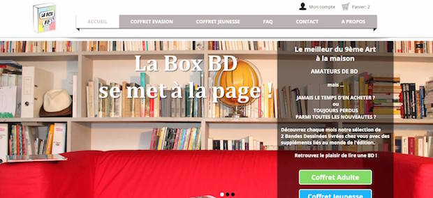 La Box BD est un coffret contenant une sélection de BD choisies parmi les meilleures nouveautés du moment via une offre jeunesse (contenu varié et connu d'avance) ou une offre adulte (au contenu surprise !). Il est possible de choisir 2 thèmes parmi les 3 proposés. La box de lecture arrivera autour du 20 de chaque mois, sans engagement à 26,99 euros par mois + 5 euros de frais de port.