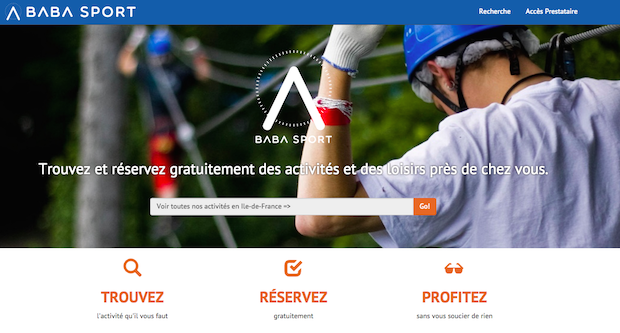 Baba Sport est un service simple de réservation en ligne de sports d’aventure et d’activités récréatives. Pour les utilisateurs, son objectif est d’aider dans le choix et la réservation d’une sortie sportive de type paintball, accrobranche, ou encore karting. Baba Sport appuie aussi durablement les prestataires de sports en créant une vitrine promotionnelle développant leur taux d'occupation.