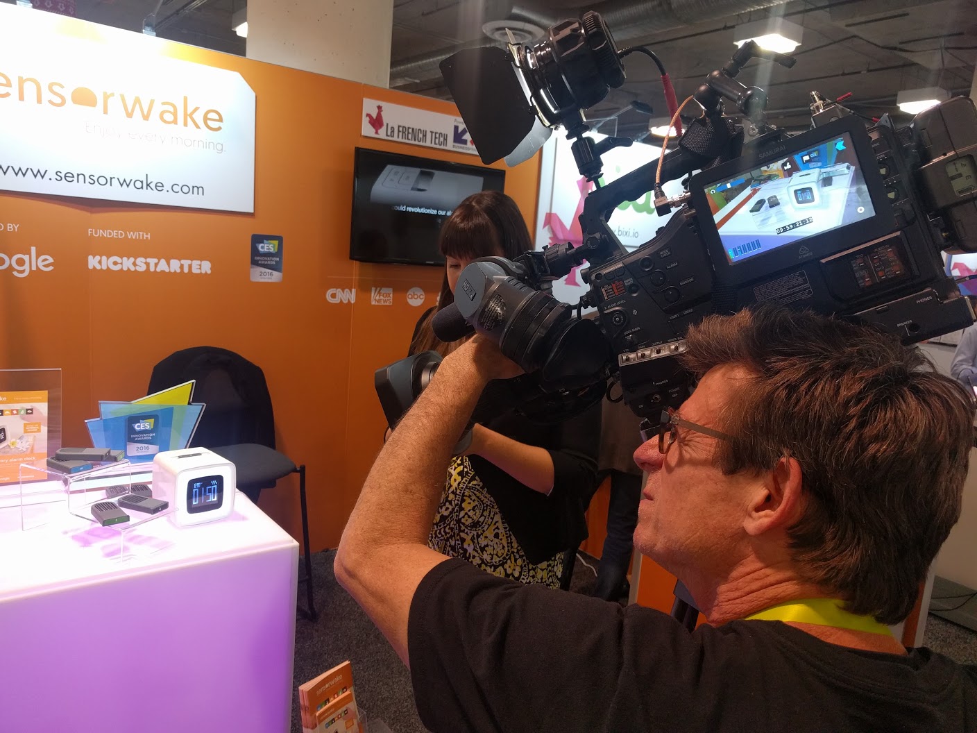 La grosse surprise de ce début de CES à été l’ouverture médiatique apportée à notre startup dès l’ouverture du salon. Nous avons eu dès les premières heures du show des articles de la presse internationale parlant du produit dans The Wall Street Journal, Bloomberg, Engadget ou CNET par exemple, un média américain spécialisé dans les nouvelles technologies. Mais aussi des médias franco-français en passant dans les JT de France 2 et TF1. Cette couverture inattendue a fait à la fois décoller les pré-commandes actuellement relancées sur notre site Sensorwake, mais aussi nous amène un trafic conséquent sur le stand avec un écho qui se fait bien sentir durant l’évènement.