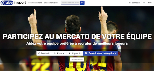 Give in Sport est une plateforme indépendante de fanfunding (en référence au crowdfunding) qui offre aux clubs de football professionnel une nouvelle source de financement, et aux supporters la possibilité d'aider leurs équipes préférées à acheter de nouveaux joueurs et/ou à conserver leurs meilleurs éléments lors de chaque marché des transferts. Plus d’équité sportive et le respect du fair-play financier, voilà les objectifs de Give in Sport, un service innovant qui vise à remettre le supporter au centre du processus de construction d’une équipe gagnante.
