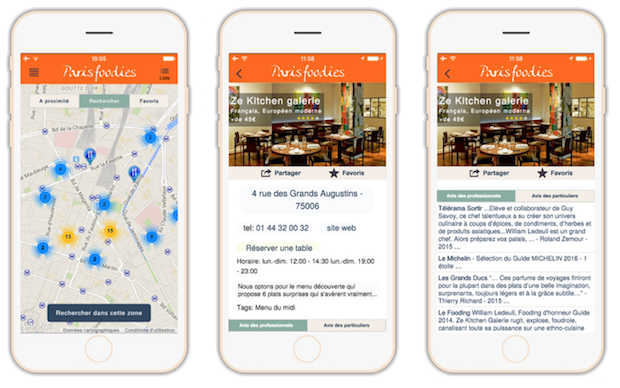 Paris Foodies vous propose une sélection des meilleures tables de Paris en vous donnant le point de vue des professionnels de la gastronomie. Pour chaque restaurant vous obtenez la synthèse des avis critiques de chroniqueurs gastronomiques renommés mais aussi de blogueurs influents qui connaissent bien l'univers des restaurant parisiens. Une note globale est calculée pour chaque restaurant à partir de l'ensemble des avis des pros. Cette app, disponible gratuitement, permet également la réservation de certains restaurants et proposera prochainement une bourse de troc de réservation pour les restaurants difficilement réservables.