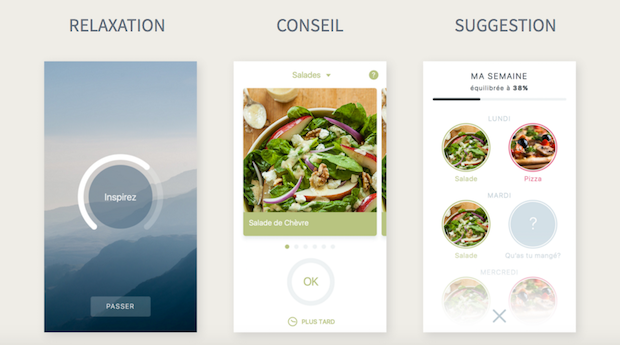 Imaginée par un nutritionniste, l'application Sooz aide les personnes actives ou stressées a améliorer leur équilibre alimentaire, sans régime, ni comptage de calories. Tout est basé sur la réduction du stress : une courte séance de relaxation guidée permet d'apaiser le comportement alimentaire et des suggestions de plats intelligentes guident l'équilibre. Une version Apple watch prévue prochainement permettra de suivre son niveau de stress et d'optimiser ainsi l'heure idéale et la composition de ses repas en fonction de son état interne.