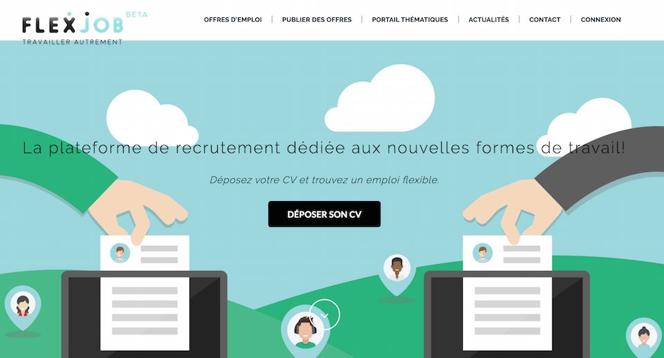 Flexjob apporte une réponse au besoin de flexibilité, de souplesse dont les entreprises et les Hommes ont besoin. Les recruteurs peuvent déposer des offres d’emploi ou de missions dites « flexibles » (travail à distance, travail en temps partagé, flextime) et consulter la CVthèque.