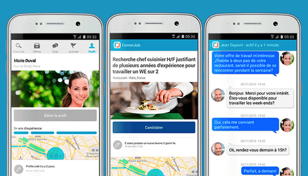 Créé en 2015 par deux Espagnols, un Français et un Italien, CornerJob développe une application mobile de recherche d'emploi, dont la promesse est de permettre aux candidats de trouver un employeur en moins de 24h grâce à une annonce de seulement 140 caractères.