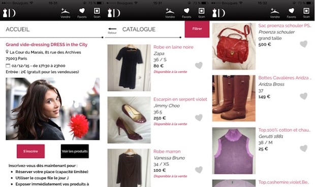 Dress in the City est un nouveau service de « vide-dressing » qui permet d’acheter et vendre des articles de mode lors d’événements et via une application. L’ambition chez Dress in the City est de proposer rapidement le premier vide-dressing omnicanal, qui permettra de vendre et d’acheter ses vêtements de seconde main sur tous les canaux : web, mobile, boutiques et toujours lors de ventes événements. En tant qu’acheteuses, si internet leur offre un grand choix, il ne permet ni de toucher, ni d’essayer les articles, ce qui peut être un frein important, notamment pour des produits déjà portés. Ces événements vont donc leur permettre de le faire, dans un espace agencé comme une boutique, contrairement aux vide-dressings classiques où il faut aller péniblement de portant en portant. Les femmes peuvent vendre leurs articles lors d’événements (sans la contrainte d’un stand à tenir) ou en ligne, et plusieurs options leur sont proposées pour récupérer leurs articles, y compris un rendez-vous chez elles.