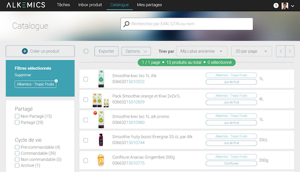 C'est ainsi qu'à vu le jour Alkemics, en 2011. Ce réseau d’intelligence collaborative de la grande consommation permet ainsi aux marques et aux distributeurs de gérer l’ensemble de l’information produit, facilitant ainsi l’interaction et le partage de tous types de contenus (informations réglementaires, descriptions, informations marketings, photos, vidéos, etc).