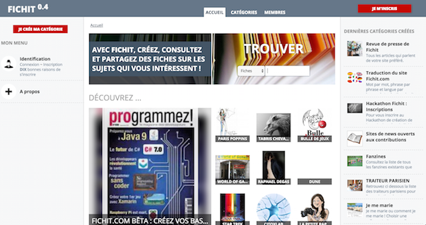 En quelques clics, un membre peut concevoir une vraie base de données sur mesure et en personnaliser tous les champs. Les fiches sont rangées dans une catégorie qui peut ensuite être partagée. Fichit se veut une plateforme d'échange d'informations publiées par des individus ou des communautés. Une gestion des droits avancée permet également de créer des catégories privées et d'en restreindre l'accès à un groupe d'utilisateurs choisis. Ces fonctionnalités ouvrent les possibilités d'application de la jeune pousse au sein des entreprises, des associations ou des groupes de toutes sortes.