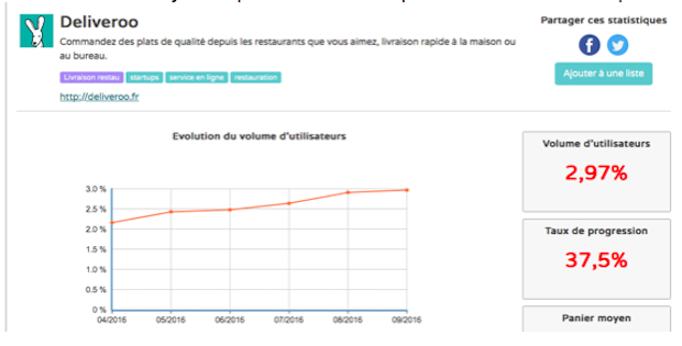 La licorne, qui a encore levé 275 millions de dollars cet été, réussit à poursuivre sa croissance et développe son offre BtoB : Deliveroo For Business. Sa croissance, toujours impressionnante, lui permet aujourd'hui de frôler les 3% du panel. La Scale-Up semble solide pour l’instant.