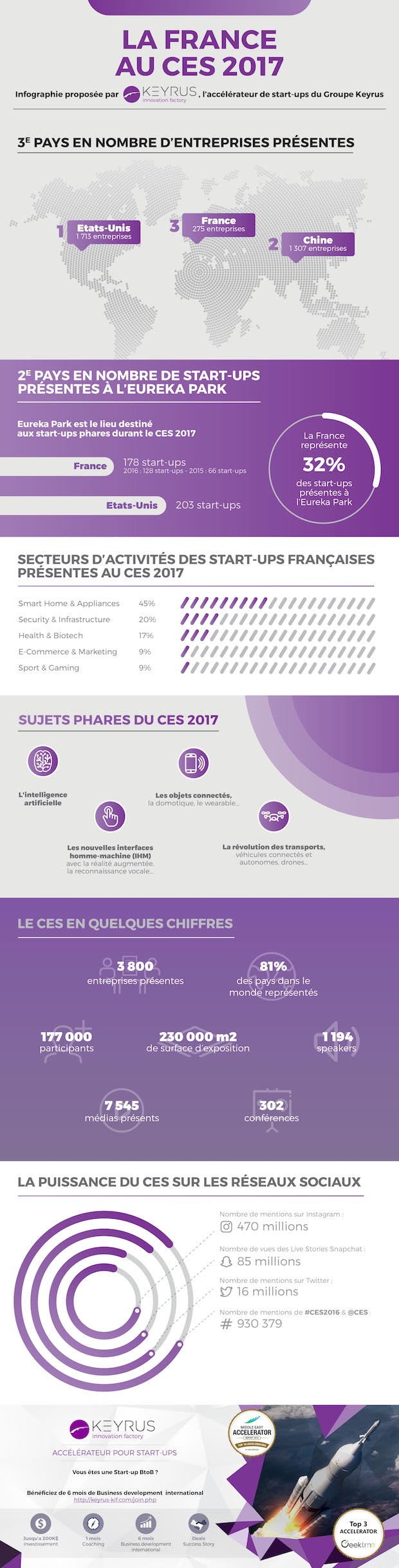 Keyrus Innovation Factory est revenu dans une infographie sur la représentation de la France au CES 2017 de las Vegas. Réussite pour l'Hexagone, qui se place à la troisième position des pays les plus représentés sur l'événement.