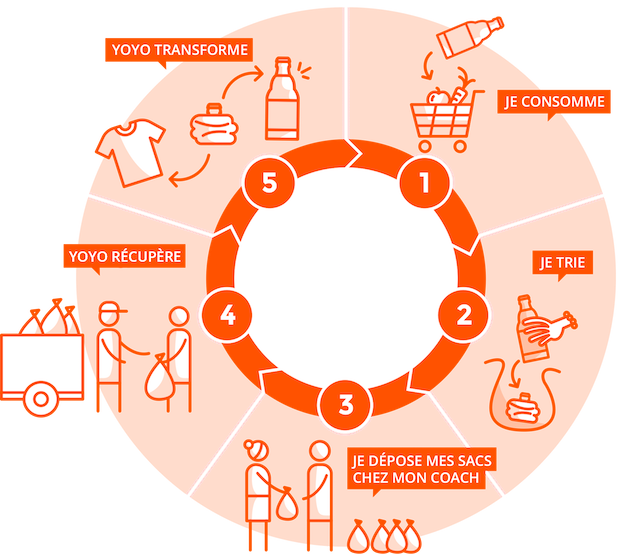 Créée en 2016 par Eric Brac de la Perrière, ancien directeur général d’Eco-Emballages, Yoyo est la consigne 2.0. Avec sa plateforme de collecte qui récompense ceux qui trient plus et mieux, Yoyo a pour ambition de doubler le taux de recyclage des déchets plastiques en France en créant un nouveau déclic chez les Français. La startup française propose à chaque habitant de rencontrer un coach qui se trouve à quelques pas de chez lui. Celui-ci lui donne un sac Yoyo ainsi que toutes les informations pour trier plus et mieux. Pour chaque sac parfaitement trié et remis à son coach, le trieur reçoit des points qui lui permettent d'accéder à des récompenses : réduction sur son sport, culture, spectacle, transports...