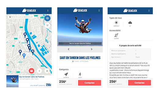 Testée en région parisienne et à Chamonix, l'application a été optimisée grâce aux retours des utilisateurs afin de répondre au mieux à leurs attentes et apporter la meilleure expérience possible. Récompensée du Funding meetings de Techinnov, du BDO coaching 2017 et finaliste du Grand Prix des Business Angels 2017, la startup française compte, à court terme, indexer un large choix de sorties : plus de 90 000 activités cette année, pour se positionner derrière TripAdvisor. À long terme, elle souhaite proposer une offre de réservation instantanée et devenir le leader sur le marché des loisirs. Alors, terminé le temps libre perdu à chercher ce que l'on va faire, Seaclick nous aide à trouver l'activité de notre choix, rapidement et facilement, pour pratiquer à la demande.