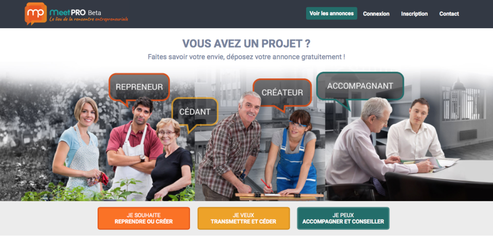 Il existe des petites annonces pour trouver un emploi, un conjoint, un logement... Pourquoi pas pour trouver une entreprise ? Ou même un repreneur ? Le site MeetPRO répond à cette problématique et propose une plateforme d'annonces dédiées aux "rencontres entrepreneuriales".