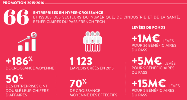 Ce sont autant de startups qui ont intégré, dans trois promotions successives, le programme du Pass French Tech. En hypercroissance, ces pépites françaises bénéficient, depuis 2014, du réseau et de la visibilité accrue qu'offre la French Tech. Ce sont les métropoles labellisées qui repèrent ces perles de demain pour les aider à accélérer leur développement, autant en matière de levée de fonds que d'expansion internationale. Notamment grâce aux différents partenaires de la French Tech : bpifrance, Business France, l'Inpi, Coface et la DGE.