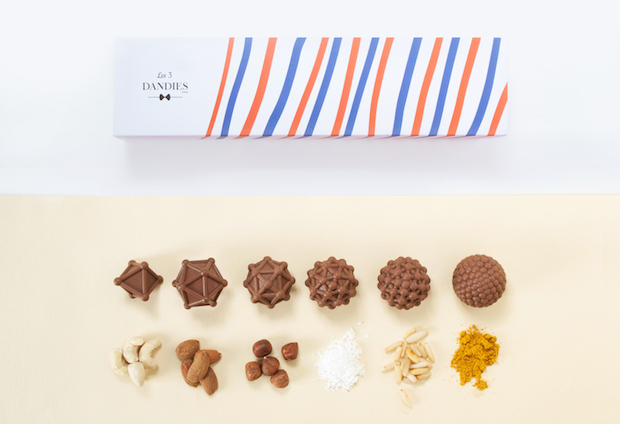 Créée par Thibaut Saras, Olivier Meunier et Edouard Bonissol, Les 3 Dandies a pour volonté de révolutionner la chocolaterie avec à l'impression 3D, afin de de créer des produits sur mesure, au design original et en un temps très limité. La jeune pousse souhaite apporter une offre qui se démarque des chocolatiers traditionnels en permettant à chacun (particuliers comme entreprises) de réaliser ses chocolats sur mesure pour un événement (mariage, réception, cadeau, etc).