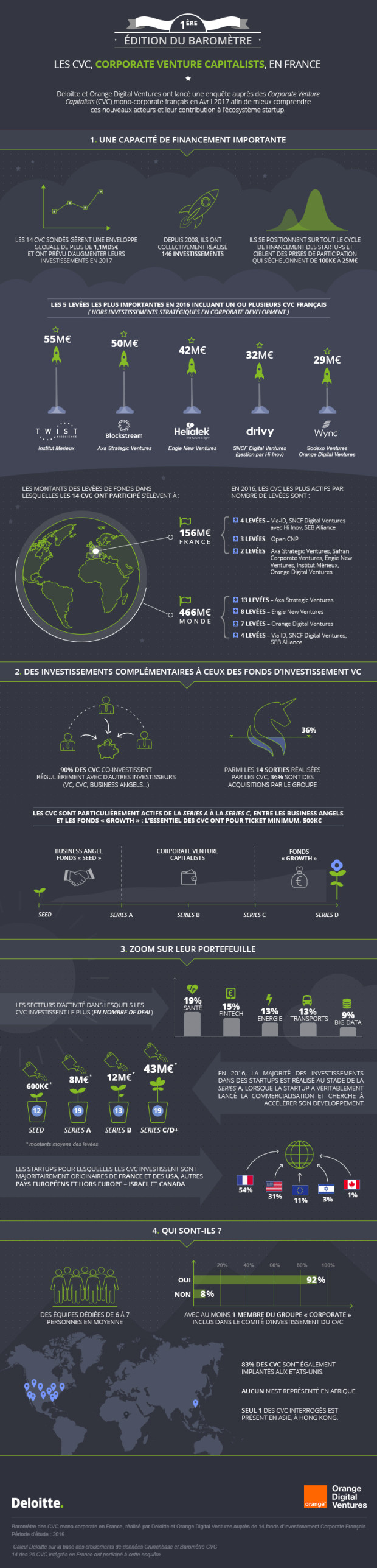 Mais qui sont donc ces fonds adossés à de grandes entreprises ? Axa, Orange ou encore SNCF ont toutes cédé à l'appel de l'innovation et créé des fonds d'investissement qui leur permettent d'aider financièrement des startups. Le premier baromètre des Corporate Venture Capitalists réalisé par Deloitte lève le voile sur ces investisseurs particulièrement actifs ces derniers mois.