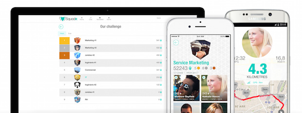 SquadR permet aux salariés d'une entreprise de participer à des challenges sportifs. Si l’activité physique se développe ponctuellement via des challenges inter-entreprises, cette application mise sur la cohésion sociale et le jeu sur le long terme. L’esprit d’équipe des salariés est ainsi stimulé à travers une compétition.