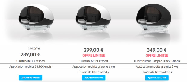 Catspad est un distributeur d’eau et de croquettes connecté pour chats, pensé pour améliorer la santé de nos compagnons et facilite la vie des propriétaires. En détectant la puce vétérinaire ou le médaillon Catspad, cet assistant permet de gérer la consommation des différents chats du foyer via son smartphone.