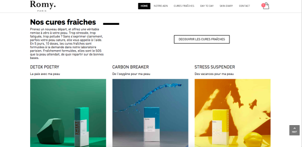 Un soin frais pour la peau, littéralement. Voilà le concept de Romy. Grâce à une technologie de formulation multi brevetée de percussion instantanée des actifs, Romy formule des produits de beauté frais et sains comme des jus de fruits (mais vingt fois plus chers).