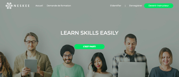 Neskee permet de suivre des formations informatiques, en mettant en relation formateurs et apprenants autour d’ateliers pratiques inspirés de cas réels. Leurs facteurs de différenciation : dispenser uniquement ces ateliers en présentiel dans des salles équipées pour favoriser la compréhension, et des tarifs très abordables (comptez 65 euros pour une formation à la stratégie de communication sur les réseaux sociaux, contre plusieurs centaines en moyenne chez les autres organismes privés).