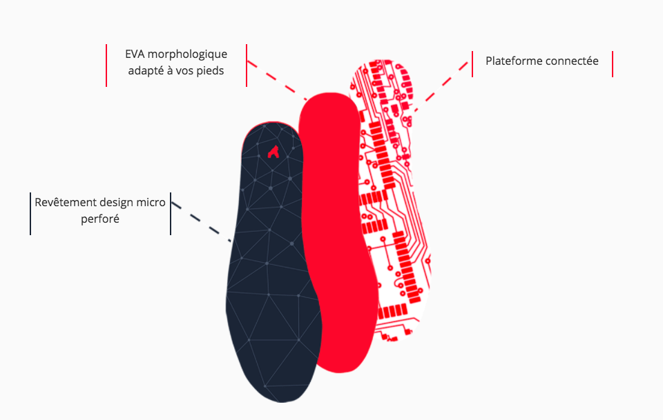Créé en 2014, Rcup développe et commercialise une semelle « intelligente » qui s’adapte à la morphologie de chaque utilisateur. La semelle vous permet également d’interagir avec votre environnement et de recueillir et vous communiquer des informations sur votre santé (détection de malaise, posture, activité, etc…). Prix : 99 euros.