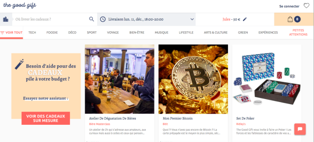 "Trouvez le cadeau idéal, recevez-le emballé, en 3h" : telle est la promesse de The Good Gift, qui a réunit sur son site tous les services dont vous avez besoin pour un cadeau réussi. Son assistant sélectionne les meilleurs produits en fonction du destinataire (pour éviter d'offrir un tire-bouchon à votre neveu de 8 ans), et permet de les personnaliser avec des petites attentions (fleurs, photos, cartes, chocolats, ...).