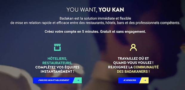 Fondé en 2015 par Bruno Calvo et David Layani, Badakan développe un service de mise en relation instantanée entre des établissements du secteur de l’hôtellerie et de la restauration avec des extras qualifiés. Au travers d'une plateforme web et d'une application iOS et Android, celle-ci permet ainsi aux professionnels d'accéder à un répertoire de travailleurs indépendants disponibles, en fonction de leurs dates de recherche et de leurs besoins : serveurs, plongeurs, cuisiniers, du matin ou du soir, en coupure ou non. De leur côté, les extras se voient offrir une sélection de missions en adéquation avec leurs compétences, leur profil et leur localisation, proposées grâce à un algorithme de matching.