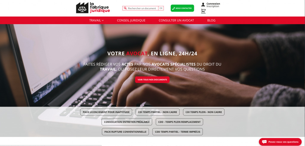 La Fabrique Juridique est un service juridique des TPE/PME géré par des avocats, en ligne, 24 heures sur 24. Notre plateforme est entièrement spécialisée en droit social et propose un panel de 150 actes disponibles à la rédaction. L’intégralité de la vie d’un salarié, de sa pré-embauche à sa retraite ou à son licenciement, peut donc être administrée par ce biais.