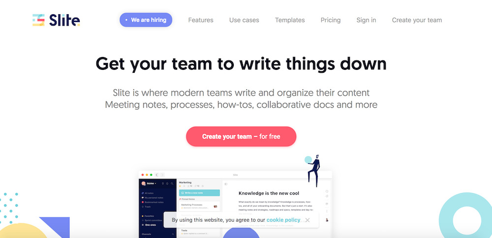 Alors que ces évolutions sont souvent appelées de leurs souhaits par les employés, la difficulté à communiquer de manière homogène nuit à l'experience globale. Slack a mis le doigt sur une dimension du problème en adaptant un outil simple et informel comme le chat à l'environnement pro. Slite souhaite en faire de même en intégrant la note, support personnel par excellence, au travail en équipe.
