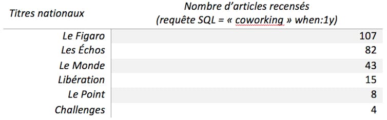 La France, qui comptait plus de 1 200 espaces de coworking (ECW) en 2019, soit l’un des pays les plus dotés sur la planète (Carte 1), a été particulièrement affectée, comme nous l’avons constaté dans nos recherches récentes. Pour ce travail, nous nous sommes appuyés conjointement sur les connaissances acquises depuis 2017 sur ces nouveaux espaces de travail grâce au programme COWORK-CVL financé par la Région Centre-Val de Loire, et sur une revue de presse française compilant près de 250 articles, avec comme entrée clé celle du coworking sur l’année écoulée depuis le premier jour du premier confinement (Tableau 1).