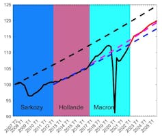 Enfin, la programmation des dépenses publiques et des allègements fiscaux prévus dans le projet de loi de finance (PLF) 2022 met la France sur une trajectoire de croissance du PIB plus forte (1,65 %) que celle observée lors des deux quinquennats précédents (1,5 %).