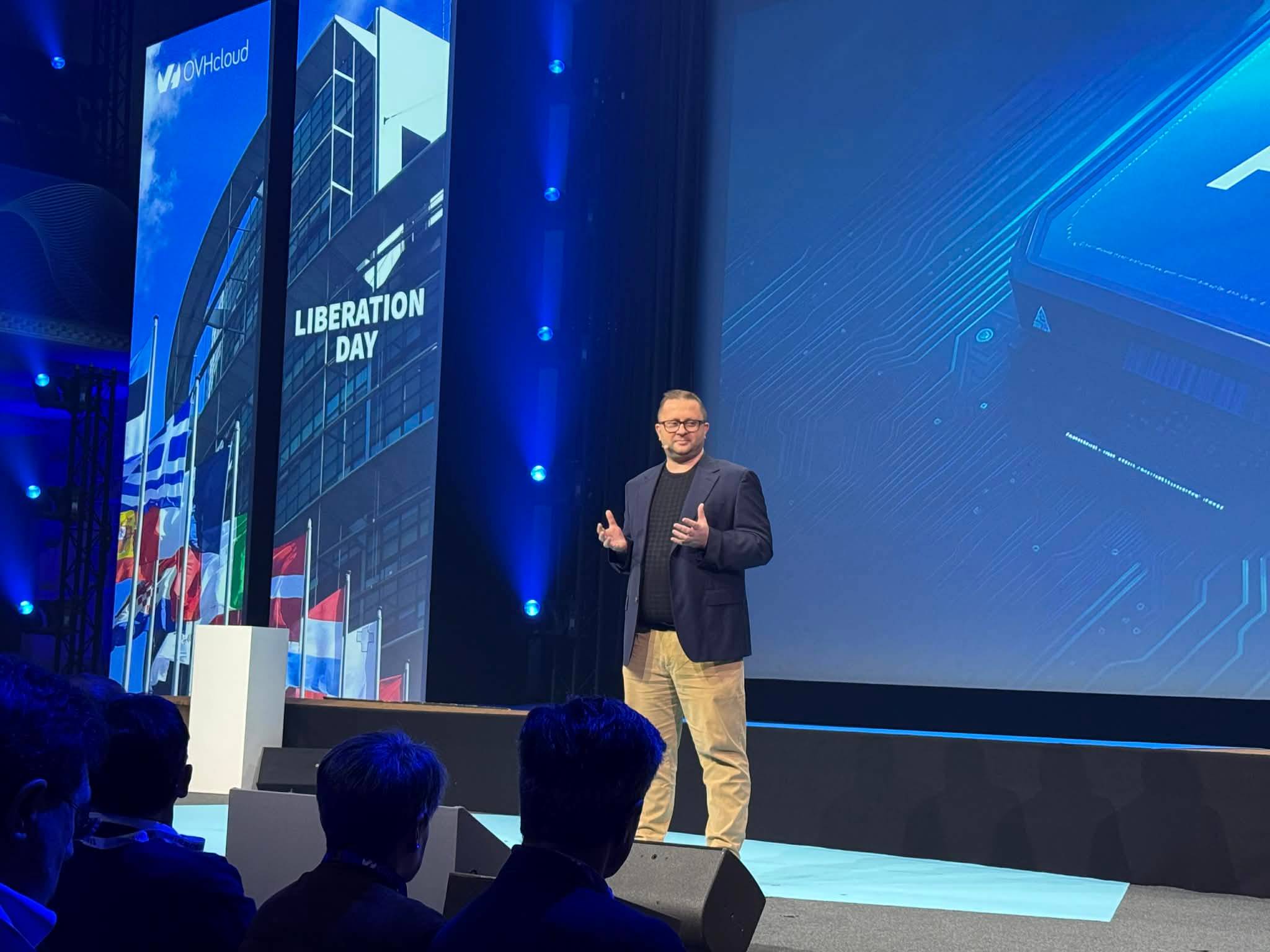 Sous les applaudissements du public, l’entrepreneur d’origine polonaise s’est ensuite posé en observateur avisé de la situation internationale actuelle pour la scène technologique. «Trois événements ont balayé nos certitudes, à commencer par le Liberation Day (l’annonce de la nouvelle politique commerciale de Donald Trump avec des droits de douane particulièrement élevés, ndlr), qui a entraîné de la résignation chez certains et une envie d’accélération pour d’autres. Le rachat de VMware par Broadcom a été une deuxième onde de choc mais comme nous sommes devenus un très bon partenaire de Broadcom, nous avons su atténuer cette onde de choc. Et la troisième, elle s’est imposée à nous tous : l’IA», a décrit Octave Klaba.