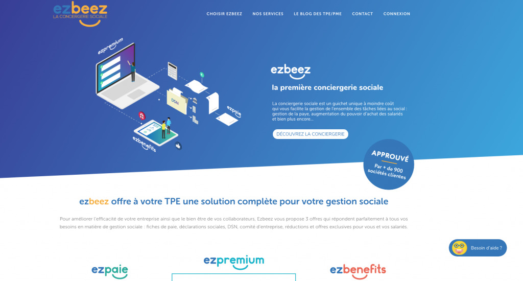Ezbeez est donc une conciergerie qui s'appuie sur les trois axes : le service/conseil, le club privilèges qui est une sorte de CE mutualisé offrant des avantages exclusifs aux bénéficiaires de nos fiches de paie et notre plateforme nommée Eznet qui permet la gestion complète du sociale.