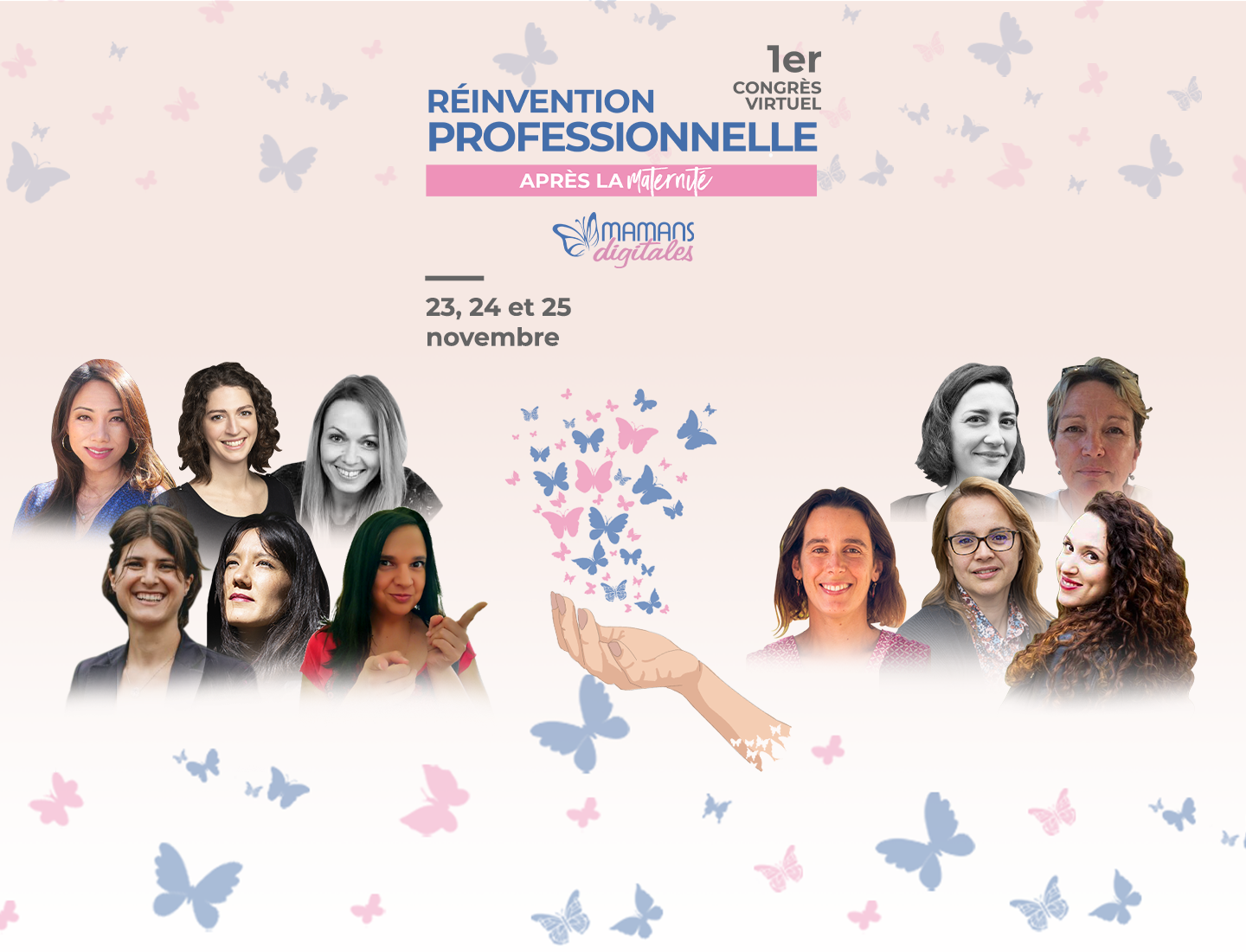 C'est pourquoi, nous vous présentons le 1er congrès virtuel, 100% gratuit, de la réinvention professionnelle suite à la maternité.