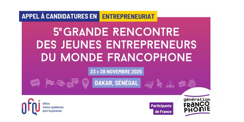L’Office franco-québécois pour la jeunesse (OFQJ), en partenariat avec la Région Ile-de-France, et avec le soutien des ministères français de l’Europe et des Affaires étrangères, et de l’Éducation nationale et de la Jeunesse, organise la 5e Grande rencontre des jeunes entrepreneurs du monde francophone (GREF).