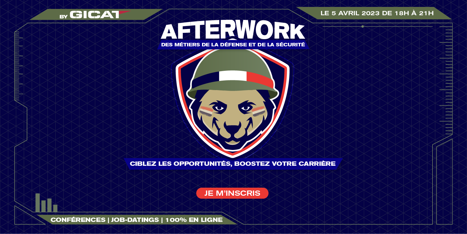 L'Afterwork des Métiers 100% en ligne organisé le 5 avril 2023 de 18h à 21h par le GICAT, le Groupement des industries françaises de Défense et de Sécurité !