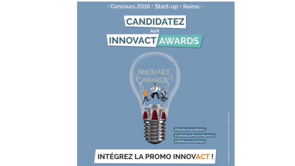 17-04-2015 12:00 17-04-2015 12:00 Europe/Paris Appel à candidatures Innovact, l’accélérateur Rémois Innovact Center anime désormais son territoire toute l’année et invite les startupers à assurer leur avenir dans une métropole dynamique et ambitieuse, située à 45 minutes de Paris et 30 minutes de l’Aéroport Charles de Gaulle. Afin d’identifier des projets et très jeunes startups prometteurs à qui sera proposé un programme d’accélération et de coaching sur-mesure, la structure lancera chaque année un appel à projets sous la marque « Innovact Awards ». [quote]Appel à projets ouvert jusqu’au 17 avril et première Promo Innovact en place en septembre[/quote] La première Promo Innovact bénéficiera d’un programme d’accélération de 9 mois à compter de septembre 2015. Pour en bénéficier, les startupers devront faire acte de candidature aux Innovact Awards avant le 17 avril. Au terme de 2 étapes de sélection qui se finaliseront avec une finale tout début juin, 5 à 10 projets et toutes jeunes startup seront invités à s’installer à Reims. De septembre 2015 à juin 2016, elles feront l’objet d’un accompagnement et d’un coaching sur-mesure, parcours coordonné par Innovact Center et assuré à la fois par ses chargés de mission et par un réseau d’experts, partenaires, industriels et financeurs impliqués dans ce programme. [quote]En savoir plus[/quote]