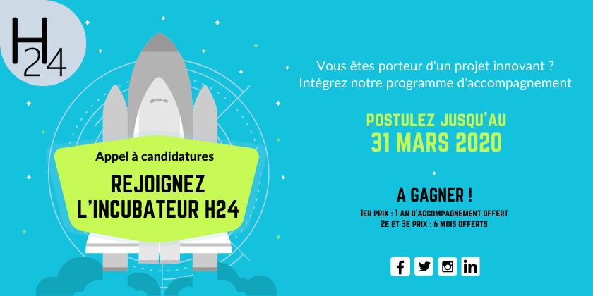 ? Les 3 meilleurs candidats au pitch de sélection remporteront 6 mois à 1 an d’accompagnement à l'incubateur H24 !