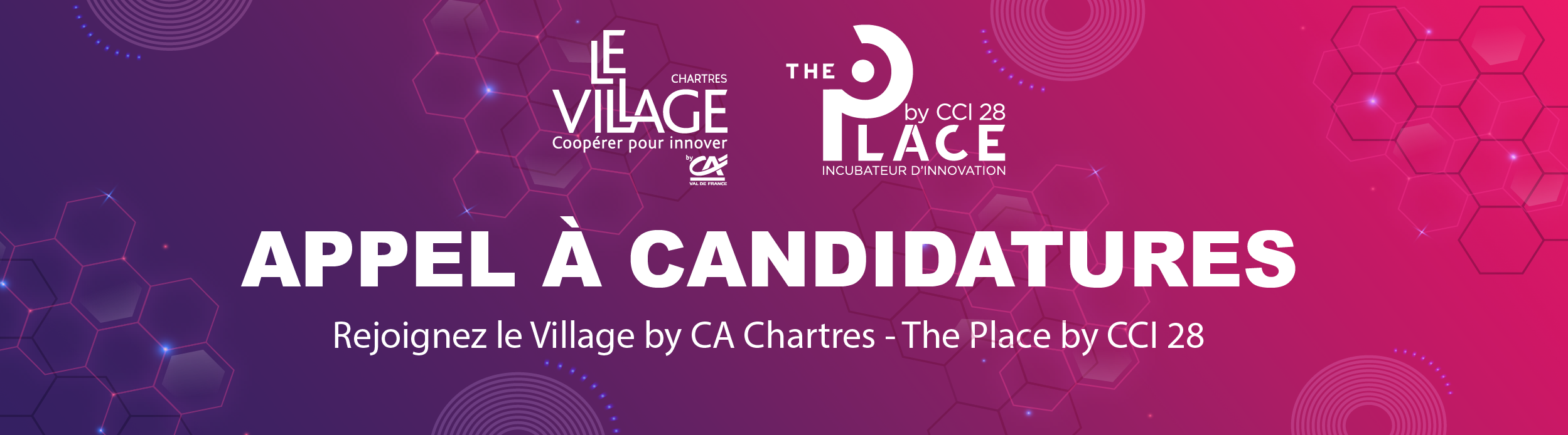 Vous êtes porteur d'un projet innovant et désirez développer votre entreprise ? Postulez pour intégrer la première promotion du Village by CA Chartres – The Place by CCI 28 ! Vous profiterez d’un accompagnement personnalisé au sein de notre écosystème d’incubation et d’accélération.