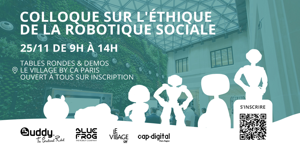 Le 25 novembre, Blue Frog Robotics organise un colloque sur l'éthique de la robotique sociale de 9h à 14h à Paris. De nombreuses références dans le domaine seront présentes (Laurence Devillers, Paul Dumouchel, Raja Chatila, Sophie Sakka, Alain Bensoussan, et bien d'autres) et échangeront autour de 3 tables rondes sur les thématiques du Care, de l'éducation et du droit. En parallèle plusieurs constructeurs exposeront leurs robots.