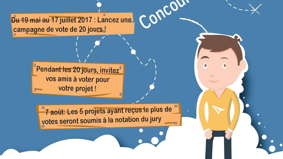 A la clé, une dotation d'une valeur de plus de 10.000€ (formation, accompagnement...). Pour y participer, il vous suffit de poster votre projet sur DreamInnov et de lancer une campagne de vote d'une durée de 20 jours obligatoirement. Date limite des inscriptions: 17 juillet 2017.