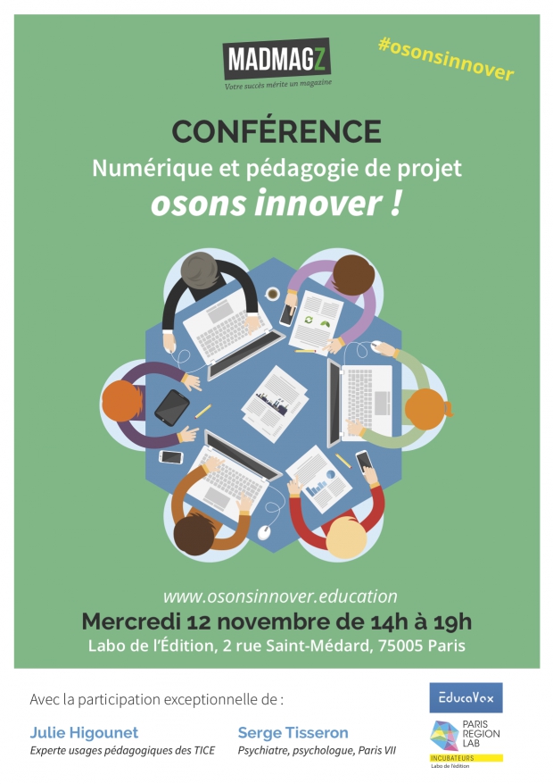 Le 12 novembre prochain, Madmagz rassemble pour la première fois en France enseignants, experts TICE, sociologues, universitaires, journalistes et représentants de collectivités locales et nationales pour faire avancer le débat sur les apports du numérique dans la pédagogie de projet.