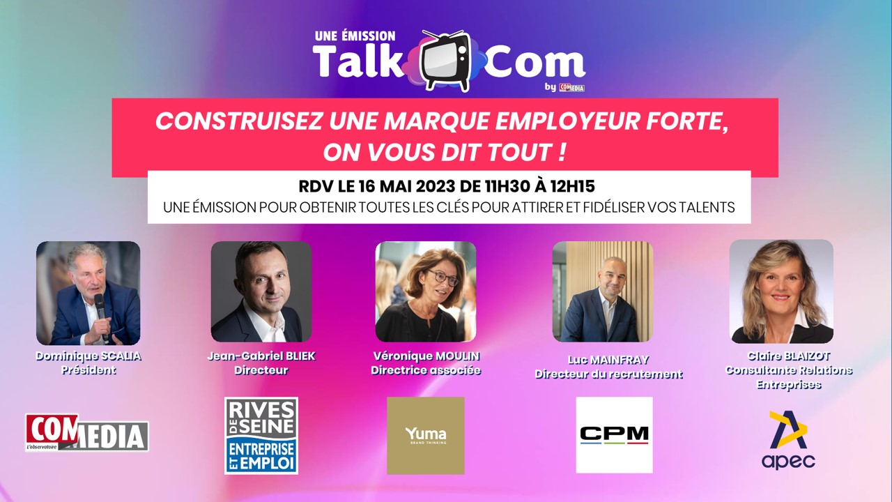 Découvrez notre nouvelle émission consacrée à la construction d'une marque employeur forte dans le secteur de la communication. Cette table ronde réunit des experts du recrutement et des ressources humaines, ainsi que des professionnels de la communication, qui vous donneront des clés pour attirer et fidéliser les collaborateurs dans votre entreprise.