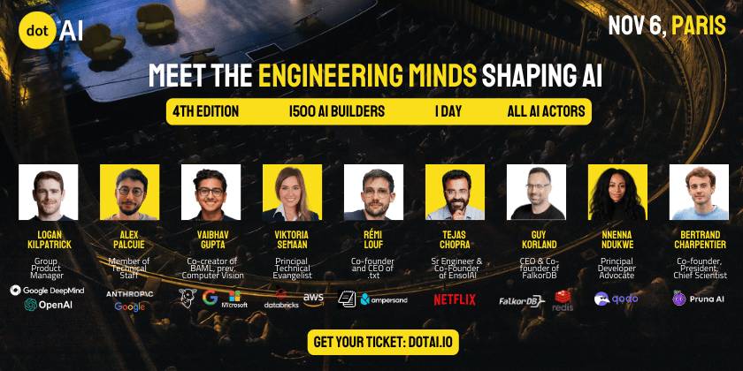 Forget passive YouTube talks, dotAI is about what you can’t get online: direct access to speakers 1:1 (yes, we make it possible), and convos with top minds at Meta, Hugging Face, Mistral, Vercel, Google DeepMind, AWS, and beyond. All at once, in one day.